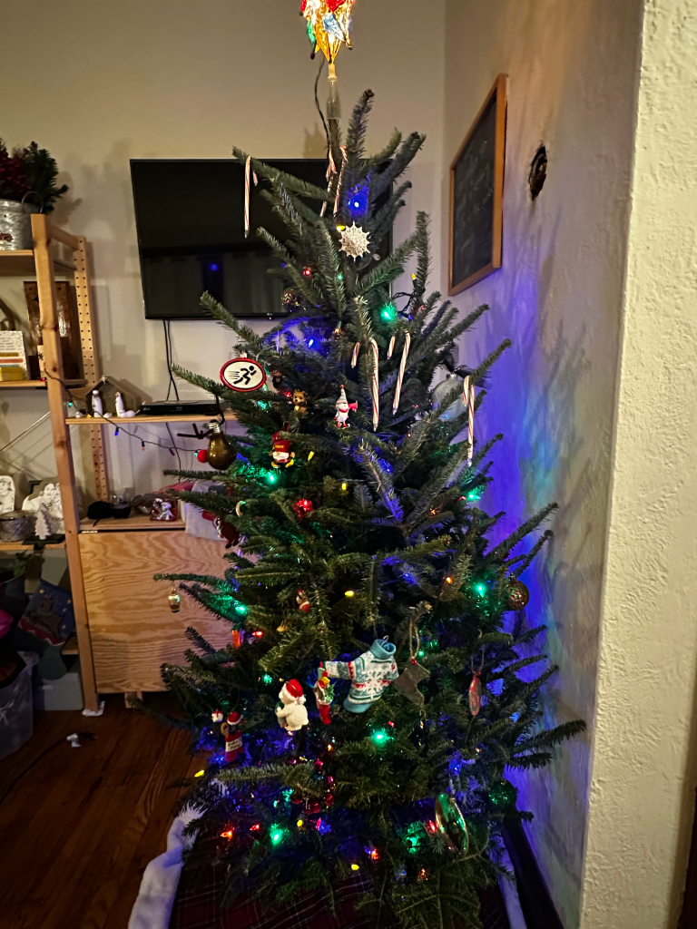 Over the years the tree has gotten bigger, I’ve added more ornaments, and I’ve upgrade lights. 3 years ago I had to purchase a bigger skirt and a new star to adorn the top as the previous options had outgrown our needs.