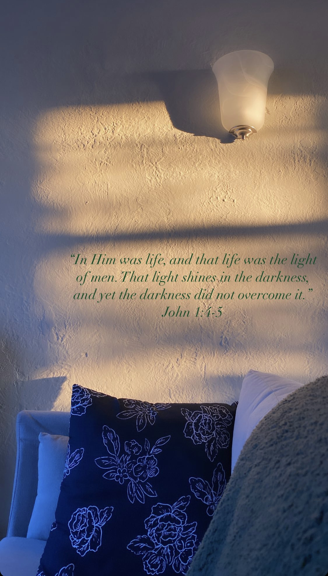 John 8:12 says, “Jesus spoke to them again: ‘I am the light of the world. Anyone who follows me will never walk in the darkness but will have the light of life.'”